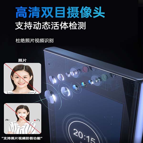 攝像頭參數(shù):采用200萬(wàn)高清雙目攝像頭支持動(dòng)態(tài)活體檢測(cè),杜絕照片視頻識(shí)別;